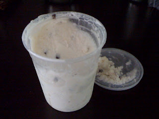 I ate, and pondered, and drowned my confusion in the world of Courtney and Bob Novogratz and their brood. And then got up, and quickly made a batch of lowfat, agave sweetened, vanilla chocolate chip ice cream. Think I'm kidding? I'm not. Once the ice cream maker was done, I threw the soft-serve ice cream in a container and chucked it in the back of the freezer, hoping for a miracle's worth of hardening before I needed to chow down.